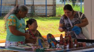 Entre os expositores está Sebastiana Batista, artesã da etnia Terena, da Aldeia Marçal de Souza. Ela comercializa peças em argila, como bonecas, vasos, pratos e chaveiros.